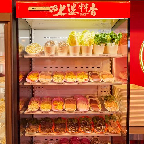 【食材组合无穷无尽!】首先,点一份您最爱的汤底,然后从超过百种食材的货架上挑选您心仪的配料!回到座位,打造属于您自己的专属火锅!每串仅需99日元!新鲜蔬菜和厚实肉块与任何汤底都相得益彰!是派对、酒会、迎宾/告别宴以及在涩谷招待宾客的完美之选!
